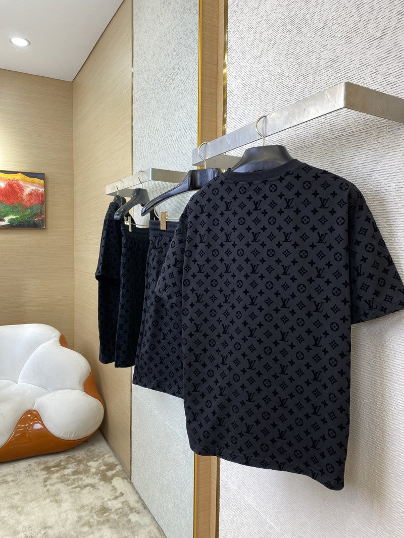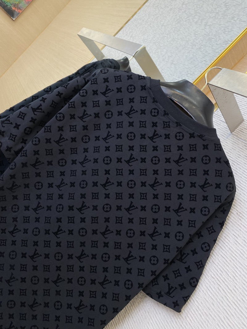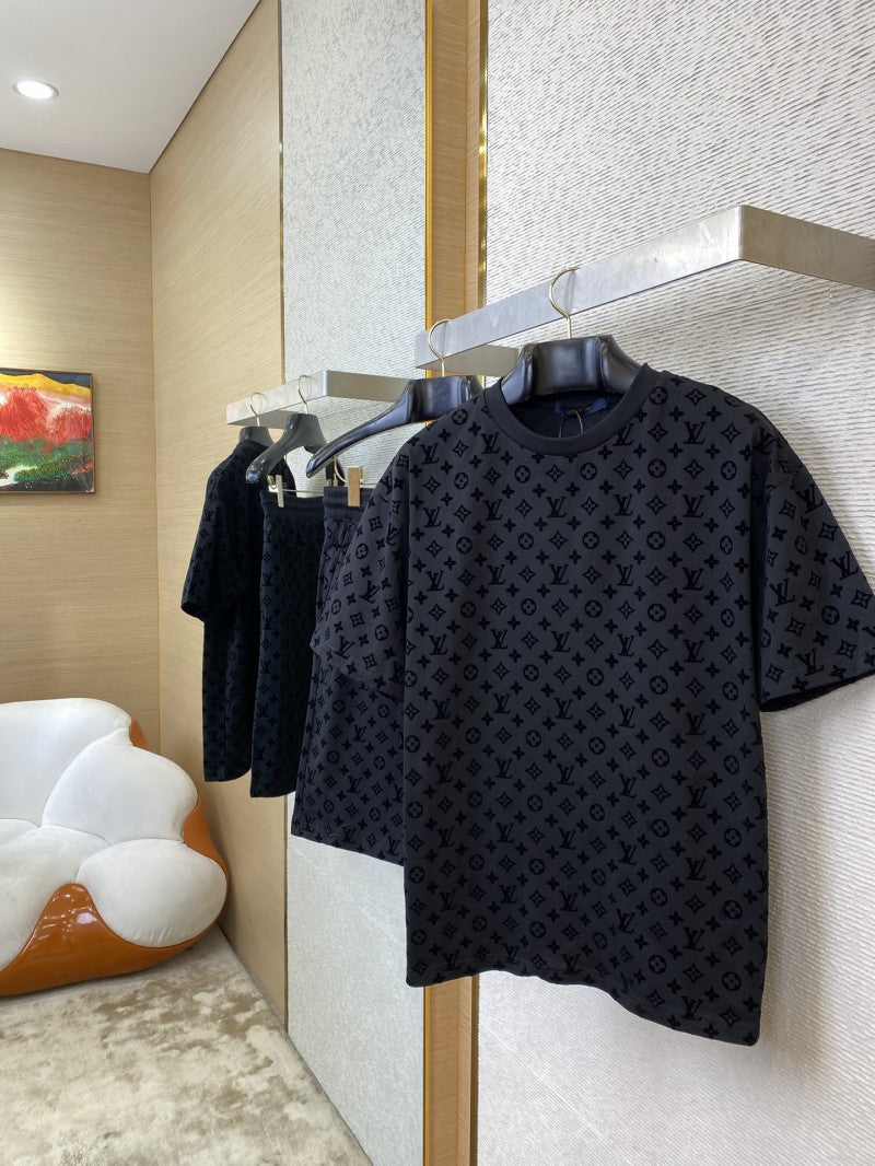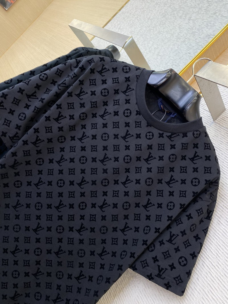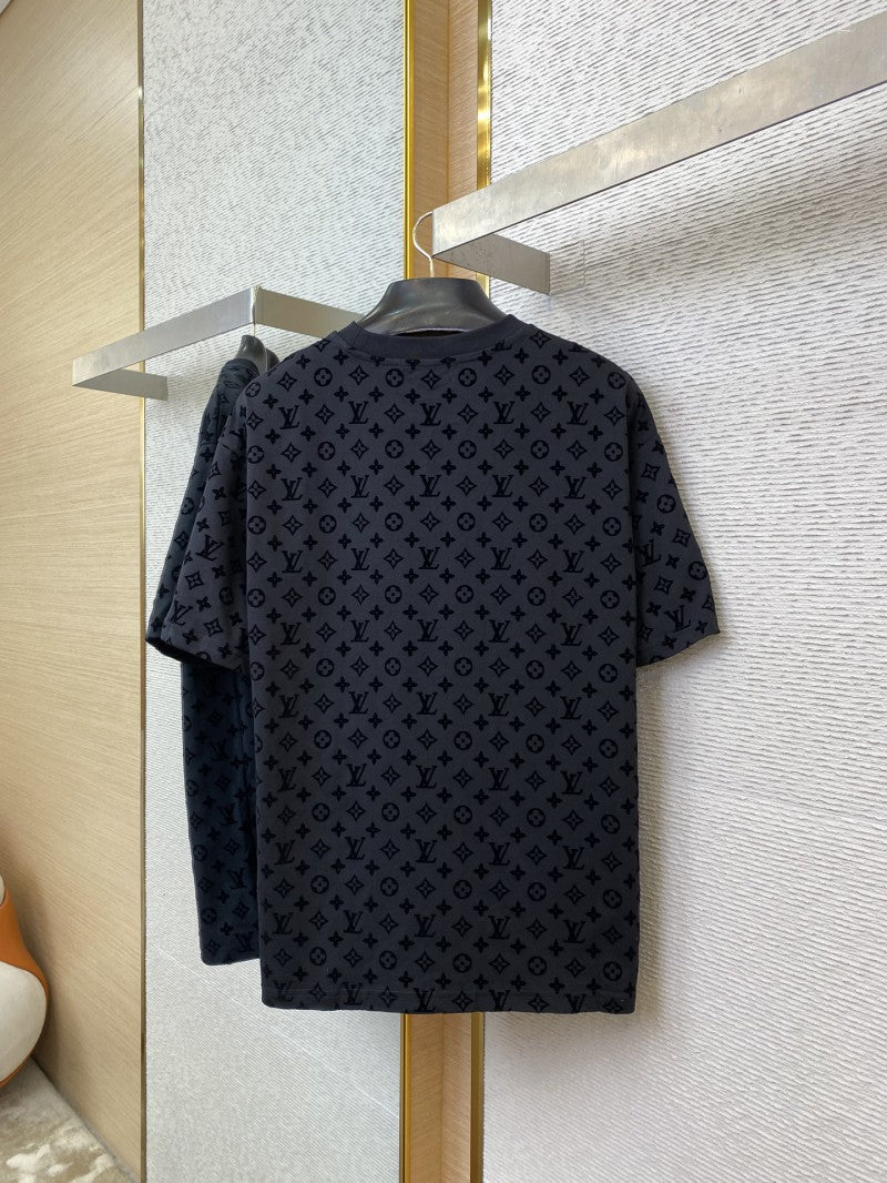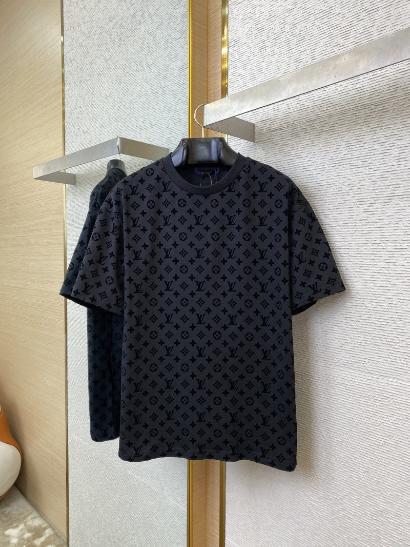 Full Print Flocked T-Shirt Black