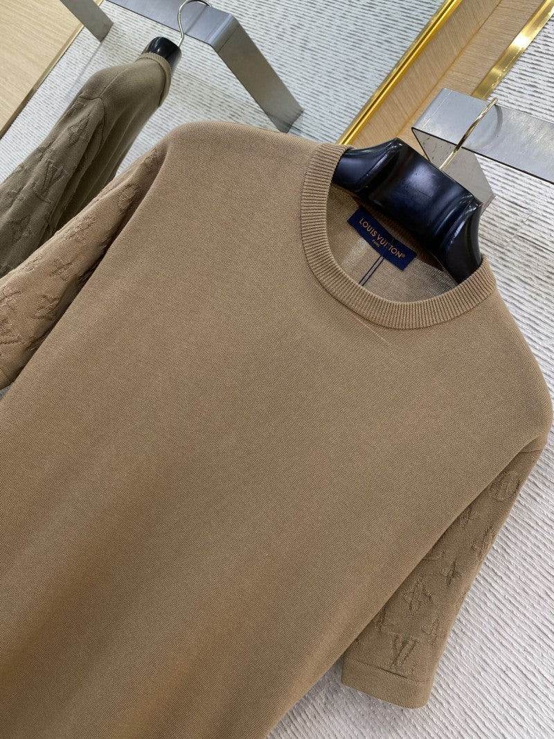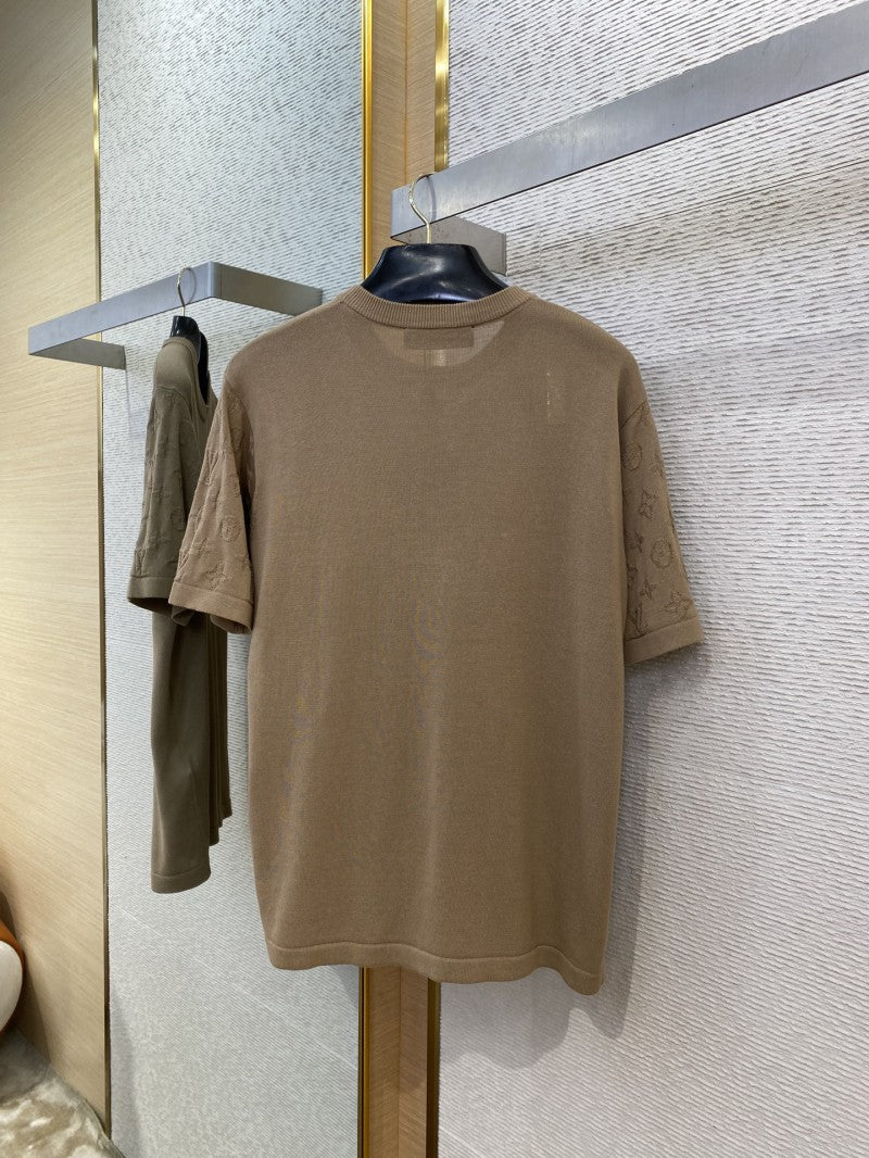 Jacquard Sleeve Knit T-Shirt Brown